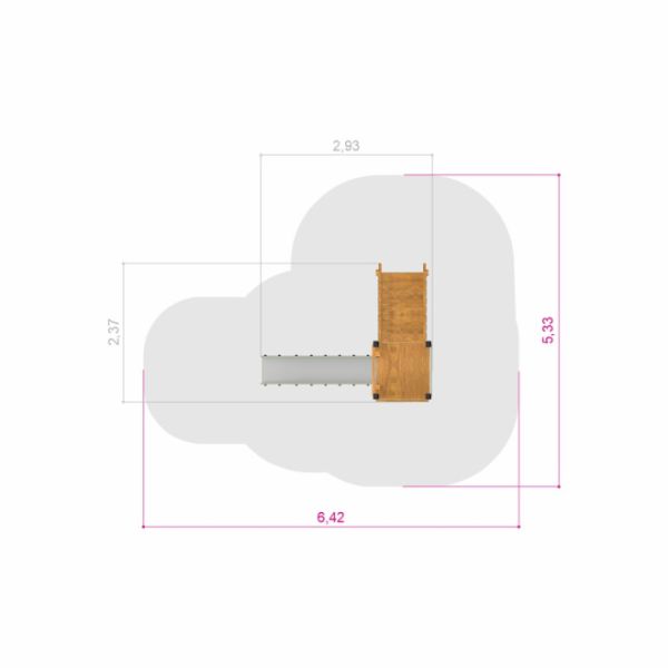 Thiết kế cho trẻ em từ 3 tuổi trở lên, tòa tháp có độ cao rơi quan trọng là 120 cm, đảm bảo an toàn trong lúc chơi. Khu vực an toàn yêu cầu là 642x533 cm cung cấp không gian rộng rãi để trẻ em vui chơi tự do và an toàn xung quanh cấu trúc.